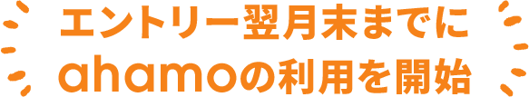 • ②ahamoを申し込む際に使用するdアカウントで、ahamo開通日の前月か当月に、キャンペーンサイトからキャンペーン期間内にエントリーすること。