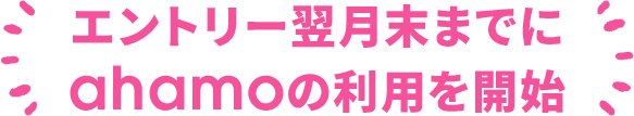 - ②ahamoを申し込む際に使用するdアカウントで、ahamo開通日の前月か当月に、キャンペーンサイトからキャンペーン期間内にエントリーすること。